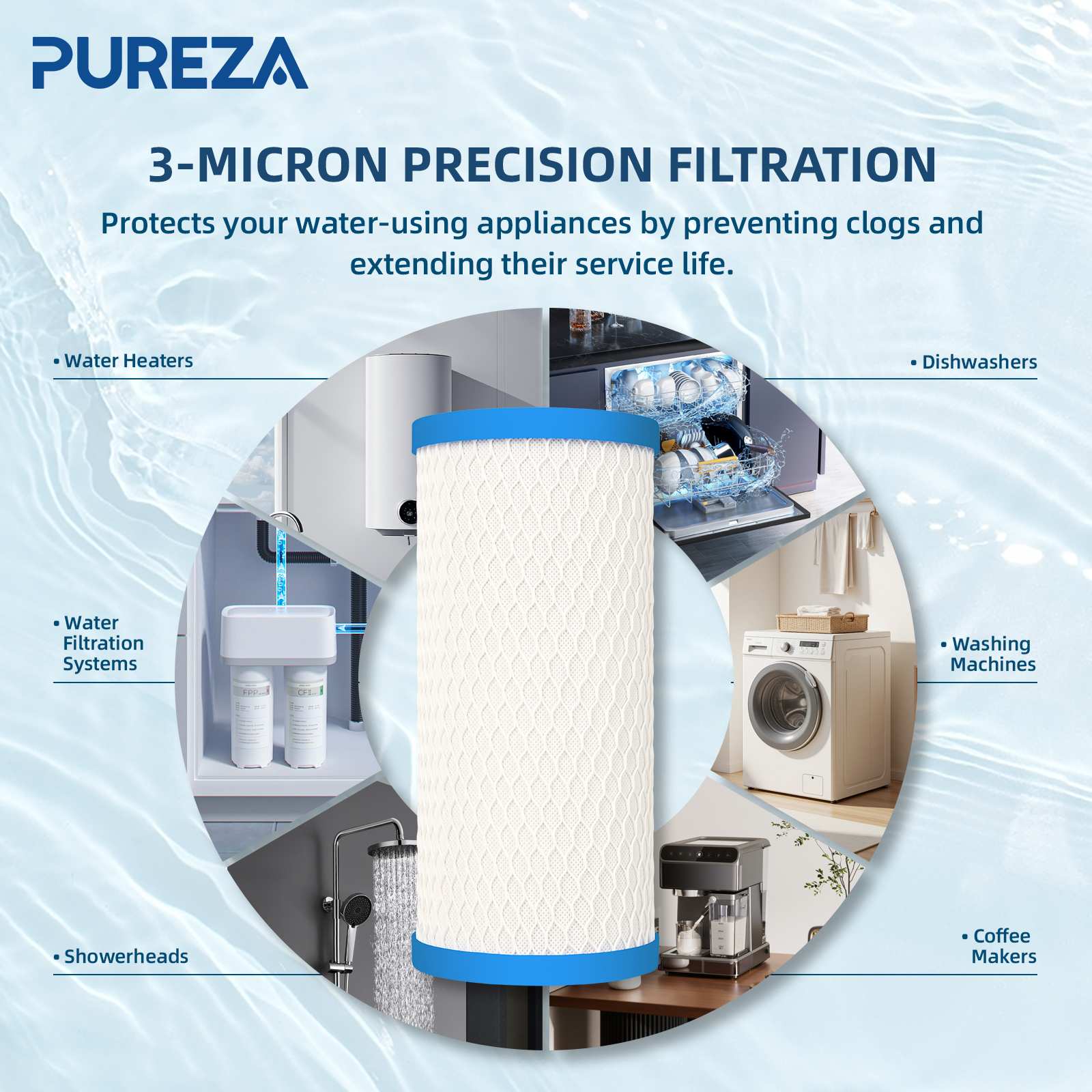 Avec une précision de filtration de 3 microns, il capture les particules fines telles que la rouille, le sable et les sédiments avant qu'elles n'atteignent votre réseau d'eau. Vous bénéficiez ainsi d'une eau plus propre et plus saine dans toute votre maison et prolongez la durée de vie des filtres et appareils situés en aval.