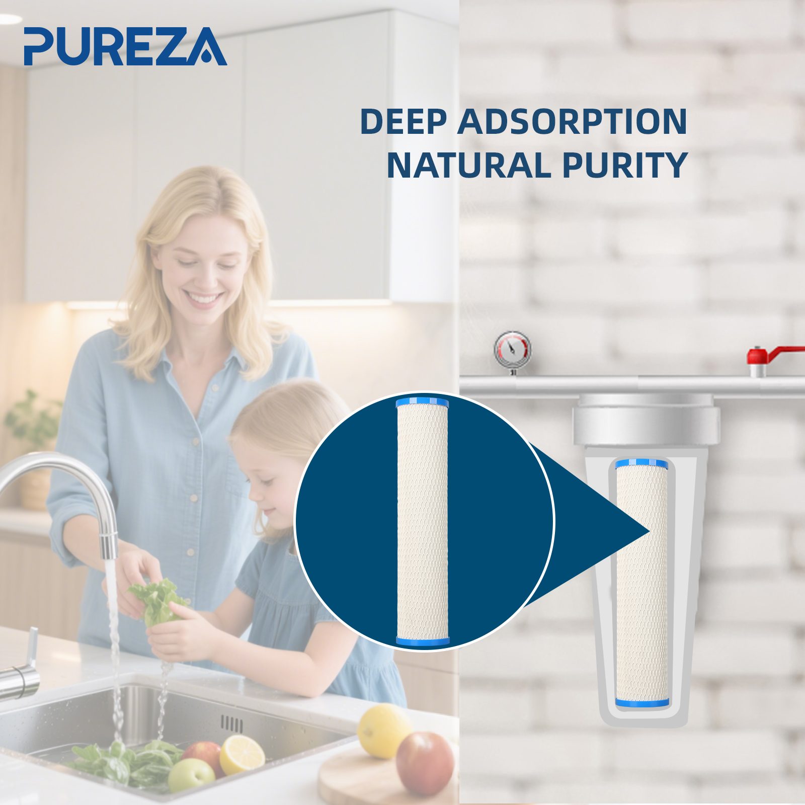 Fabriqué à partir de charbon actif de coque de noix de coco de haute qualité, ce filtre réduit efficacement le chlore, les odeurs et les polluants organiques présents dans l'eau. Adapté aux systèmes de préfiltration et de postfiltration, il garantit une eau plus claire et plus pure, au goût naturellement doux, assurant ainsi une protection fiable de votre eau potable domestique.