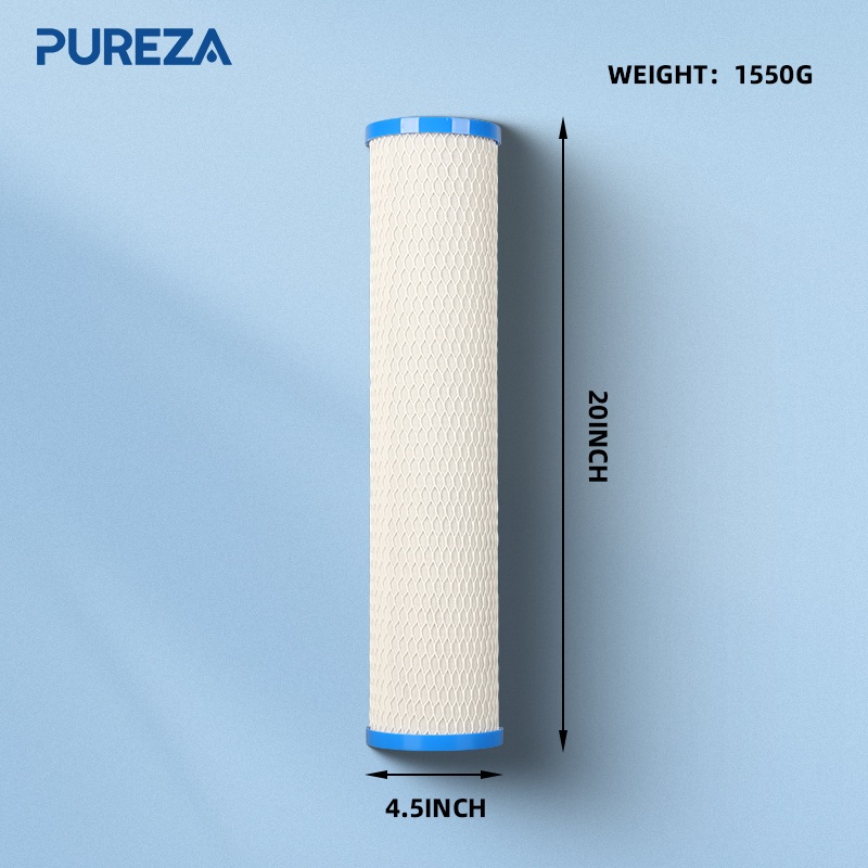 Conçu comme un bloc de charbon actif bleu universel de 50 cm (20 pouces), il s'adapte à la plupart des systèmes de filtration domestiques standard et des systèmes de filtration sous évier traditionnels disponibles sur le marché. Sa facilité d'installation et son remplacement rapide en font le choix idéal pour une utilisation domestique et commerciale.